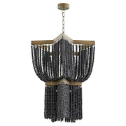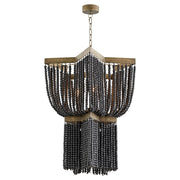 The elegant Estrella Pendant possesses a natural contrast between its gilded two-piece frame and the dark monochromatic beads that make up its impermanent body. The Estrella Pendant is perfect for any formal space.