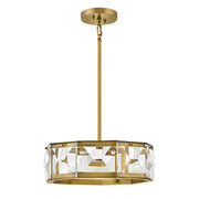 Jolie is a unique blend of sophistication, style, and technology. Integrated LEDs are sleekly concealed within gleaming Heritage Brass rings at the top and bottom of the design. Robust blocks of faceted crystal radiate with light, creating a transfixing silhouette while providing outstanding illumination.