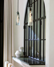 With a dramatic but sleek silhouette and elongated crystal-cut sconce shades, Cosette exudes opulent charm. With two luxurious heavy-cut crystal shade options, smokey gray or clear, both beautifully cast a rich, multi-faceted light pattern. Cosette's sconce includes an elegantly concealed on/off switch, making it perfect for bedsides and intimate spaces pattern.