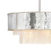 Reverie features a fanciful combination of finishes and shapes to create an opulent transitional silhouette. The robust, hammered stainless steel drum encompasses the textured crystal accents, which create a stunning profile from below. Metal binding adds an artisan touch that completes the look.
