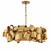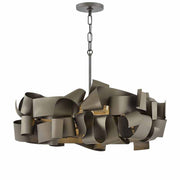Delfina features a boldly elegant steel ribbon available in Deluxe Gold or Metallic Matte Bronze. This organic shape is both visually intriguing and pleasing as the light flows gently across the overlapping bands.