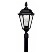 Manor House is a classic lantern design with clear beveled glass panels and a bold Black finish. Select-A-Lite options come standard with both candelabra and medium based sockets.