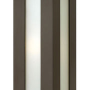 Dorians robust design in durable aluminum construction is offered in Bronze finish. This contemporary fixture allows light to emit from white etched glass windows.