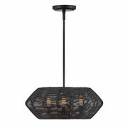 Luca's coastal vibe is permeated with a slightly exotic edge. The bold pendant showcases a robust, woven drum shade, and a full finished cluster for plenty of functional light offered in either Black with Black shade, Polished Chrome with Natural shade, or Black with Camel shade. Luca is part of the Lisa McDennon Collection.