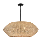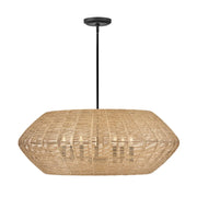 Luca's coastal vibe is permeated with a slightly exotic edge. The bold pendant showcases a robust, woven drum shade.