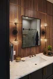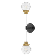 Poppy features clear seedy glass spheres that bubble out of the refined Black with Heritage Brass frame to create a simple, yet sophisticated silhouette. Elegant, stepped clear seedy glass globes and crisp crossbars anchor this airy design. Poppy showcases mid-century style with a spectacular spin.