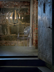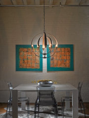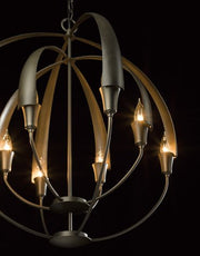 There's no need to make a choice between form and function - as part of the Cirque Collection, this large chandelier delivers both. Two concentric orbs are hand-forged into eight tapered steel petals merging at the sculpture's apex.