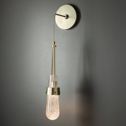 With its trademark, thick, hand-blown glass, this Link Low Voltage Sconce features a choice of clear bubble glass or white threaded glass from a nearby Vermont glass artisan. With a very wide range of height adjustability, the Link can be used in unique applications, including bath vanity, bedside, and more.
