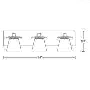The Wren Three Light Sconce's design element is simple. Steel rectangular plates with slightly curled edges shape bands of light which stream from the narrower sides while the open end of the glass directs light for practical needs.