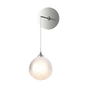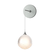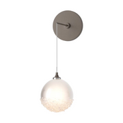 How lovely! The graceful Fritz Globe Low-Voltage Sconce is a wall-mounted fixture with an extensively-adjustable drop height. Unique in its beauty, the elegant glass sphere is etched on the inside for a subtly diffused light, with an outer glossy surface whose bottom is heavily-textured with fritted glass for dramatic effect.