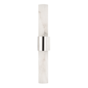 The very definition of minimalism, less is truly more with Ellington. The sculpted metal collar doubles as a backplate, attaching the sconce directly to the wall without the need for any additional adornment. The real focus of this fixture is the alabaster tube shade. Equally as beautiful unlit, the alabaster gives off a gorgeous, soft glow when filled with light. This smooth and stylish sconce comes in aged brass or polished nickel finishes.