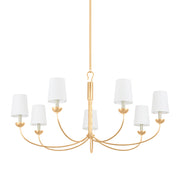 Stylish in its simplicity, the Montpelier chandelier features 7 candle sleeves topped with tapered white linen shades. A twisted central rod and distinctive hook-and-ring detail offer graceful support to the curved arms of this timeless silhouette.