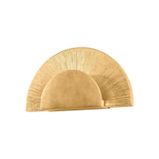 Retro meets modern in this fan-shaped flush mount wall sconce. A hidden LED emits a radiant glow through the brushed Vintage Gold Leaf fixture. Reminiscent of sunbeams, it makes a striking impression in a bedroom, living room, hallway, or entry.