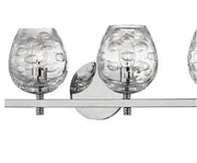 Straight lines and circles, screw-like ridges and bubbly glass contrast to give visual interest to this attractive wall sconce. When used above a mirror, Burns lends a breezy, chic feeling to a room.