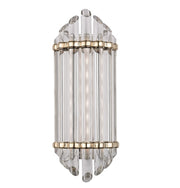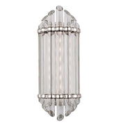 Fluted cast metalwork clasps Albion’s shimmering array of polished rods. The broad rods, beveled on each end, are arranged in tapering order before a frosted glass diffuser. Combining the bright light and energy efficiency of LED with the glamour of Art Deco style, Albion is a winning wall sconce or bath and vanity piece, sure to endure in both style and substance.