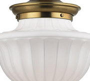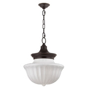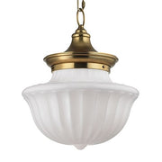 In the early 1920s, exposed-bulb light fixtures were jettisoned in favor of opaque glass globes that disguised the light source. These pieces found popularity predominantly in schoolhouses, giving this style its name. Here, we start with a classic schoolhouse glass shape and take it up a notch with lovely fluting that beautifully diffuses the light. The uncomplicated metal work and the iconic glass shape call to mind a time when the world seemed a simpler place.