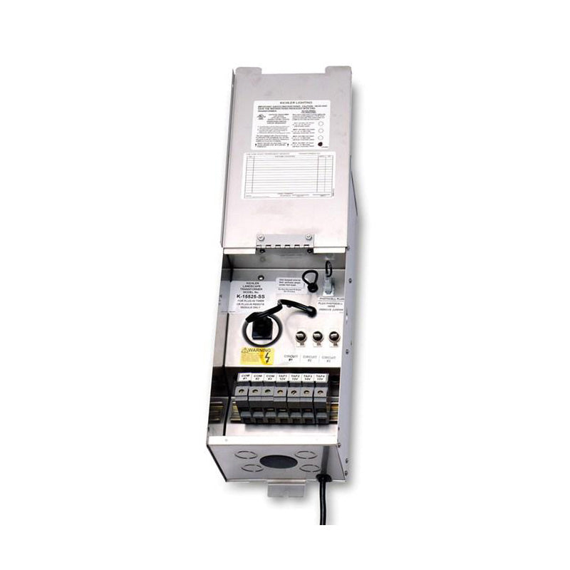 The 100W Pro Series Transformer in Stainless Steel reduces standard 120V line voltage to 12V low voltage required for landscape lighting and powers up to 100 watt installation. It also features two 15V taps and two commons for easy wire management.