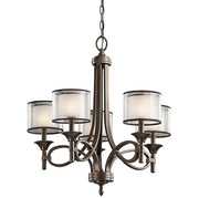 This 5 light chandelier from the Lacey Collection offers a beautiful contrast, melding the charm of Olde World style with clean modern-day materials.