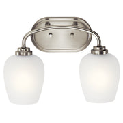 Inspired by the elegant and sleek design of a wine goblet, the 2-light vanity fixture from the Valserrano collection conveys grace and beauty with its finish and Satin Etched glass. Valserrano pairs traditional elements with a simple design to create a clean, classic look.