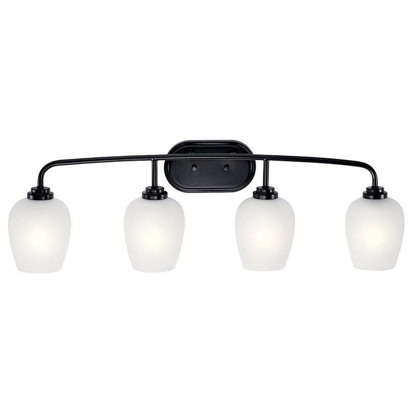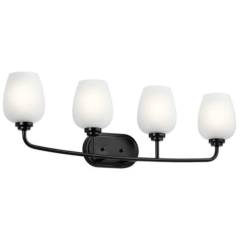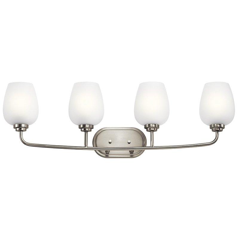 Inspired by the elegant and sleek design of a wine goblet, the 4-light vanity fixture from the Valserrano collection conveys grace and beauty with its finish and Satin Etched glass. Valserrano pairs traditional elements with a simple design to create a clean, classic look.
