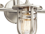 This 3 light bath light from the Nautical Inspired Caparros Collection brings a touch of the seaside to your home. The cool Brushed Nickel finish and clear ribbed glass unite to create a delightfully transitional style that is perfect for any decor.