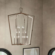 A stately pendant, extra large in scale, the Abbotswell 16 light foyer pendant offers maximum impact with minimal lines. Its open cage with simple geometric forms create a timeless look that continues to trend. Ideal for rooms that require a larger fixture to fill horizontal or vertical spaces, Abbotswell works in a variety of decors, including updated traditional.