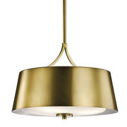 This 3 light convertible pendant/semi flush ceiling light from the updated traditional Maclain collection features smooth lines in a Natural Brass finish with subtle and pleasing Satin Etched White glass.