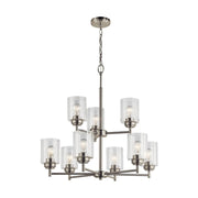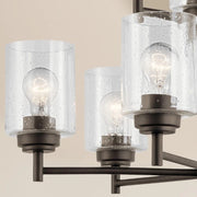 Update your space with the clean, classic, early-electric look of the Winslow 9-light chandelier. A focal piece that's sure to be all the rage, this Winslow fixture easily jazzes up luxe industrial lifestyles. Winslow's clear seeded glass filters light beautifully and is removeable for ease of cleaning or replacement.