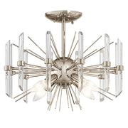 In the 4 light semi flush from the Eris collection, crystal accents, Polished Nickel arms and radiant light come together like they never have before. This Kichler exclusive design features 1960’s inspired shape modernized to deliver brilliant 21st century light.