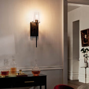 The Alton 1 light Wall Sconce in Black is inspired from the luxe industrial-era, specifically from the Bauhaus school of the 1920s and its belief in simple, refined geometric forms. Its clear seeded glass shows off its decorative hardware accents to create a look that's perfect for all tastes and styles.