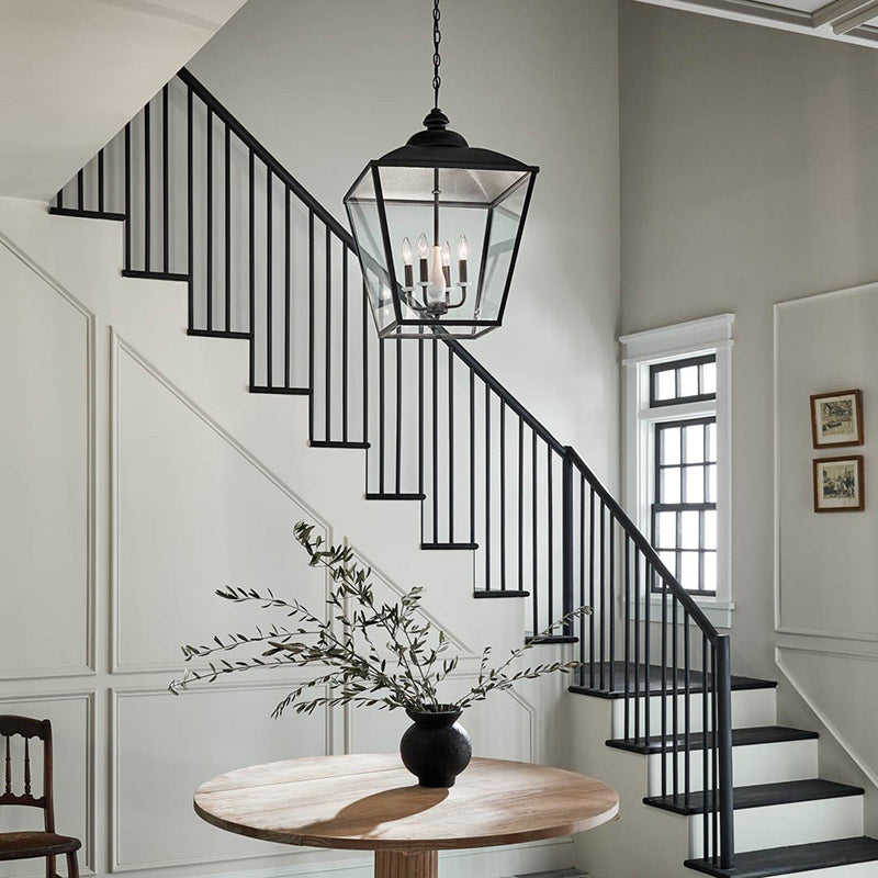 The Dame 4 light foyer pendant refreshes the traditional lantern.