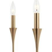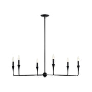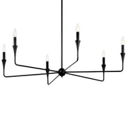 The Alvaro chandelier features a simple silhouette and unique tapered accent. Designed with 90-degree angles, Alvaro starts at the canopy, floats down to the center root of the fixture, and then glides outward and upward with a bloom of light at the end.This fixture also features bobeche on each arm — flaring out into the candlestick for a soft modern look.