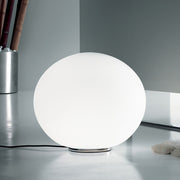 A minimal design that seems to float delicately in your space, the Sphera Table Lamp is made of hand-blown Italian glass. Matteo Thun designed Sphera in 2000 as a simple, slightly flattened oval shape that emphasizes the remarkable quality that goes into each of their productions. Sphera uses a technique called incamiciato, where Italian Maestro glass blowers use multiple layers of glass—each of different transparencies and properties—to create a rich satin white finish that is strong and provides perfect diffused light in your space.