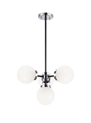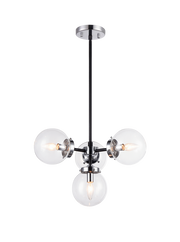 A Mid-Century style that will work with many décors. The series comes in two finishes, Aged Gold Brass and polished Chrome with Matte Black accents. The finished look can be completely different whether you choose opal glass or clear. The fixtures come with a 4-inch rod included so you can convert them to semi-flush pieces instead of a chandelier. This series can brighten any room with its timeless style and versatile design.