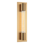 The Riely wall sconce is a whimsical play on the shape of a fuse, but far more elegant. The ribbed glass stands out against the Aged Gold Brass or Matte Black canopy and end caps resulting in a delightfully charming look.