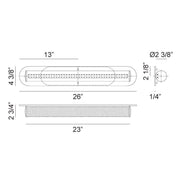 • Backplate: 26" W x 4.38" H x 0.25" E