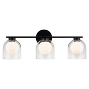 Derbishone, a striking vanity series with graceful dome shaped clear glass. Available in 4 different sizes and 2 finishes: Aged Gold Brass or Black. Charming addition to room.