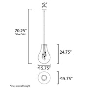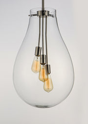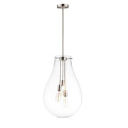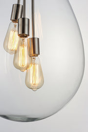 The crystal clear, large-scale glass pendants attest to the craft of hand-blown glass with their impressive scale. These hand crafted glass pendants embody simplicity and minimalism. Accented with Satin Nickel hardware, the style pairs well in a variety of settings.