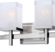 Square glass shades ride upon a rectangular bar to create geometry at its best. Available in Polished Chrome with Satin White glass and Satin Nickel and white Linen glass.