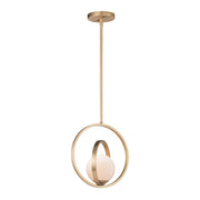 Adjustable rings available in Polished Chrome or Satin Brass add dimension to this contemporary pendant design.