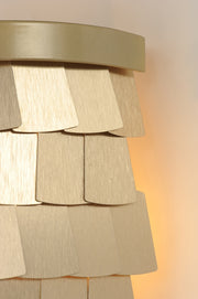 Just off the runway this fashionable collection features aluminum panels finished in Brushed Champagne gracefully draped on a contemporary frame finished in a soft Gold. Beautiful by day and elegant in the evening this collection construction emulates the stitching of a dress.
