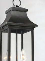 Inspired by classic coach gas lanterns, the Vicksburg collection features die-cast aluminum construction finished in Black with Clear glass. The candle sleeves are done in a contrasting off-white finish to add dimension to the lantern. Available in numerous sizes and configurations including a handsome pocket wall.