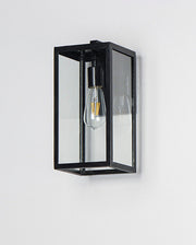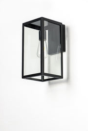 An elongated rectangular shaped design that is both minimalist and industrial. Die cast frames of Dark Bronze support Clear glass panels that provide an unobstructed view of the lantern's interior. Customize with your choice of lamps from vintage to tubular.