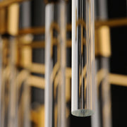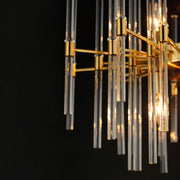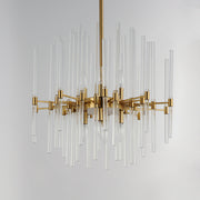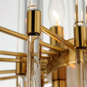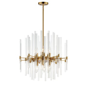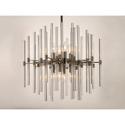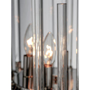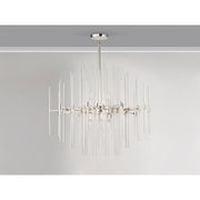 The composition of Clear glass rods are elegantly supported by thin radial arms of different length in a collection that is truly Divine. Finished in Polished Nickel, the simplicity of this design delivers a crisp lighting fixture that works in a multitude of interior genres from contemporary to traditional.