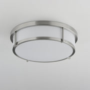A steel framed acrylic shade transitional flush mount available in a variety of finishes and sizes. Featuring easy accessibility to the shade after installation, the locking mechanism that shade's frame rests on top of making removal quick for keeping clean and replacing lamps over its lifetime. For those who prefer not to re-lamp, an LED option enhances the fixture by evenly dispersing the light across the shade, and it includes additional options made for light commercial applications. This includes an emergency backup battery and range voltage inputs.