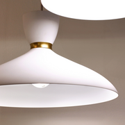 A full bodied silhouette of bell forms are presented in the Carillon collection. Two tone Black or White with Gold bandings are available in various proportions. Choose from a tall, thin pendant or more conventional pendants in small or oversized shapes.