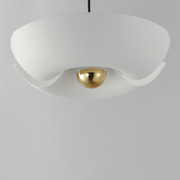 Incurved metal petals of Storm Grey or White finish with Satin Brass caps make oversized biophilic light fixtures. Available as wall sconces or pendants, the various configurations provide playful forms both nostalgic or youthful. Pair with a white G25 lamp or reflector lamp to complete the look.