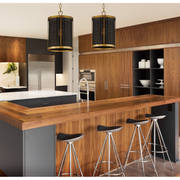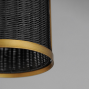 Experimenting with various materials for weaving and their technique, two iterations of a classic drum pendant were made using blackened rattan and cane wicker. The overall effect is nostalgic, coastal, and yet transitional with a variety of design aesthetics.
