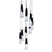 Hazy acrylic cones combine with crisp metal skirts on these pendants, which are installed on one canopy, creating an artful statement and delivering ample lighting to spaces throughout a home or business.