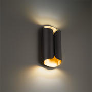 A piece of enchanting light and harmonious design. This ADA wall sconce basks modern living spaces with delectable ambient light. The bronze finished profile features luscious gold leafing, creating an abstract expressionist profile that commands attention. With glowing illumination, the mesmerizing luminaire utilizes integrated and energy-efficient LEDs suitable for placement in residential or hospitality venues. Versatile enough to mount in all directions for a variety of applications.
